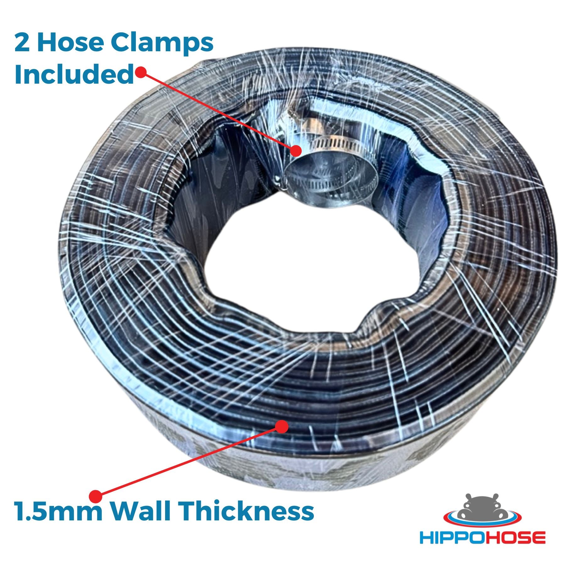- EXTRA HEAVY DUTY, HIGH TENSILE STRENGTH BACKWASH HOSES - Our extra heavy-duty swimming pool backwash hoses are made of high tensile strength PVC and are 1.5 millimeters thick. This allows them to transport a large amount of water under high water pressure. Hippohose pool backwash hoses can operate under harsh outdoor conditions. They are both chemical & weather resistant to handle extreme hot and cold temperatures.